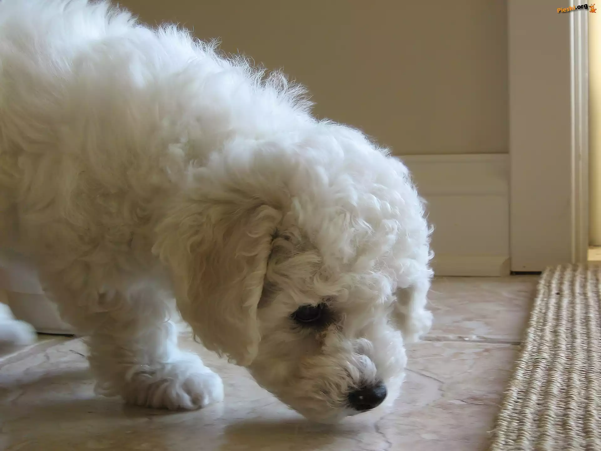 Bichon Frise, Biały, Piesek, Pokój