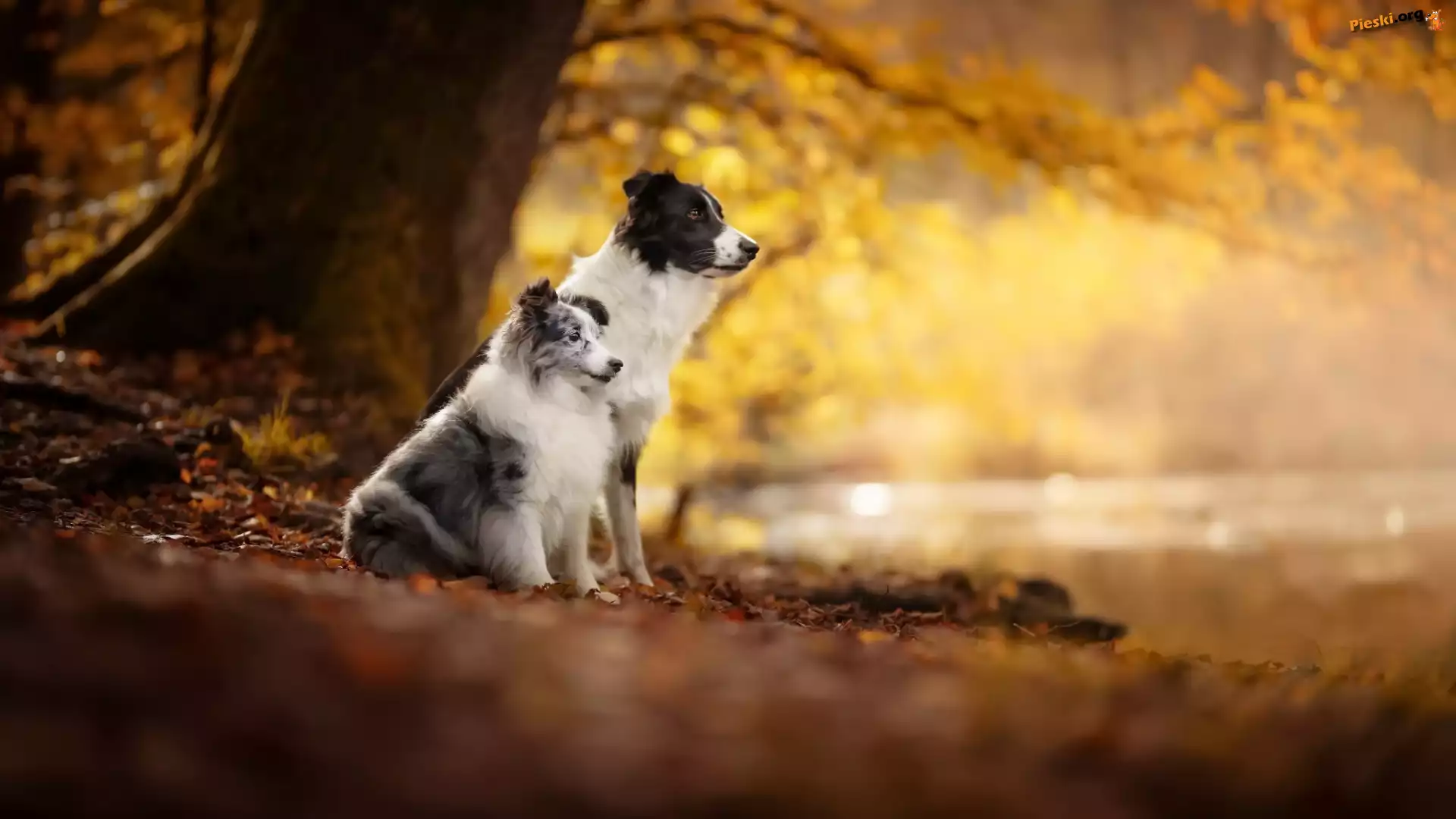 Border collie, Dwa, Psy, Owczarek szetlandzki, Pieski