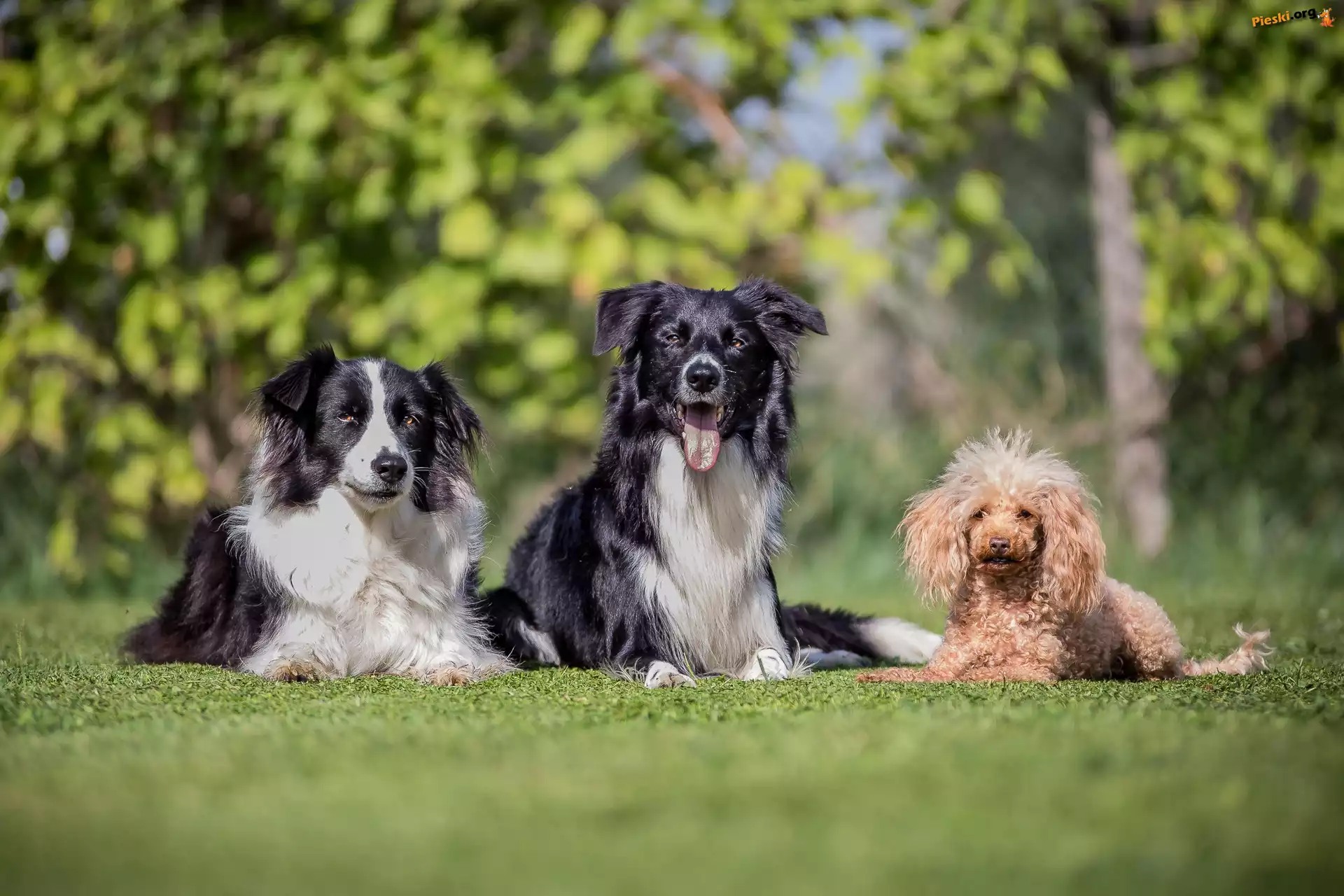 Border collie, Trawnik, Psy, Pudel miniaturowy