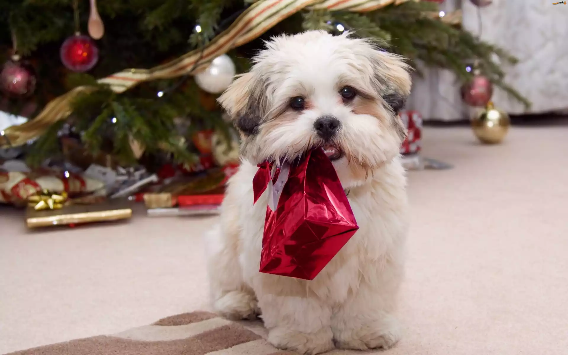 Pies, Choinka, Prezent