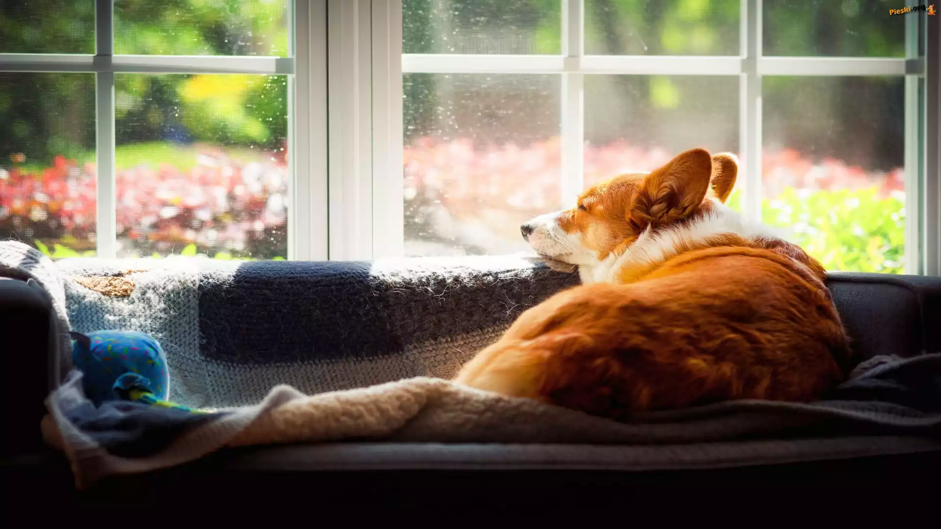 Welsh corgi pembroke, Okno, Pies, Pieski