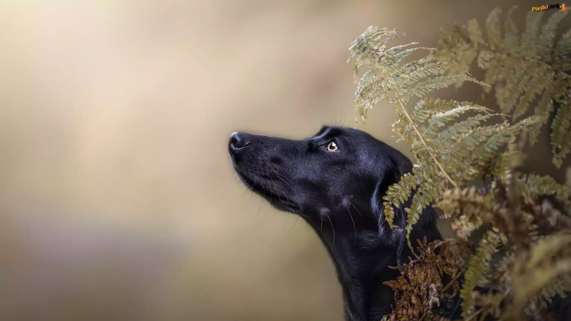 Czarny, Rozmyte, Paprocie, Pies, Mordka, Tło, Pieski