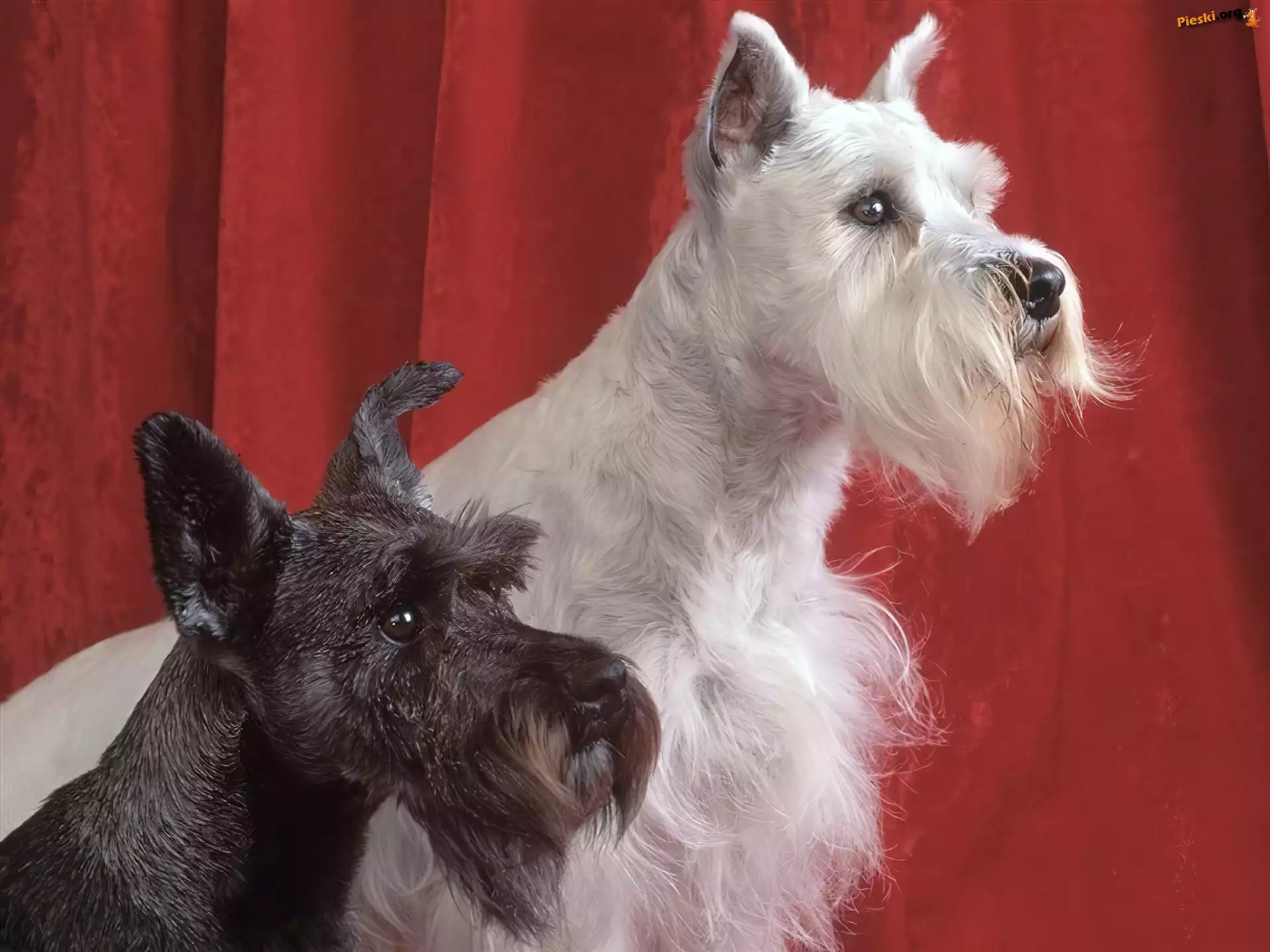 Sznaucer miniaturowy, Dwa, Psy, Sznaucer średni
