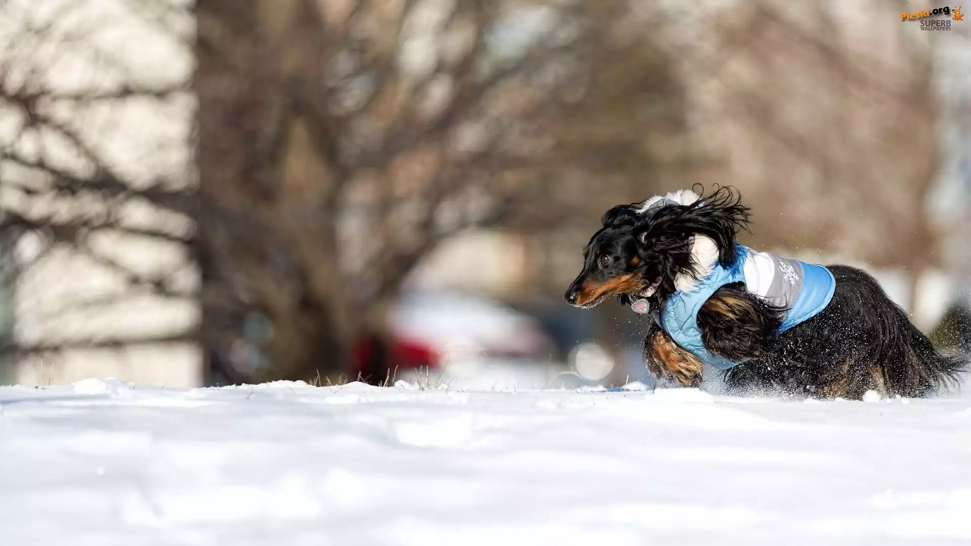 Jamnik, Zima, Śnieg, Długowsłosy