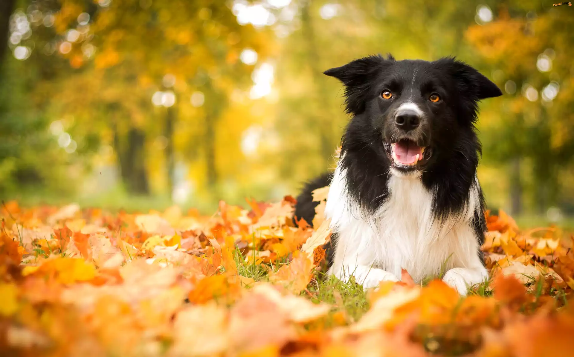 Jesień, Pies, Border Collie, Pieski