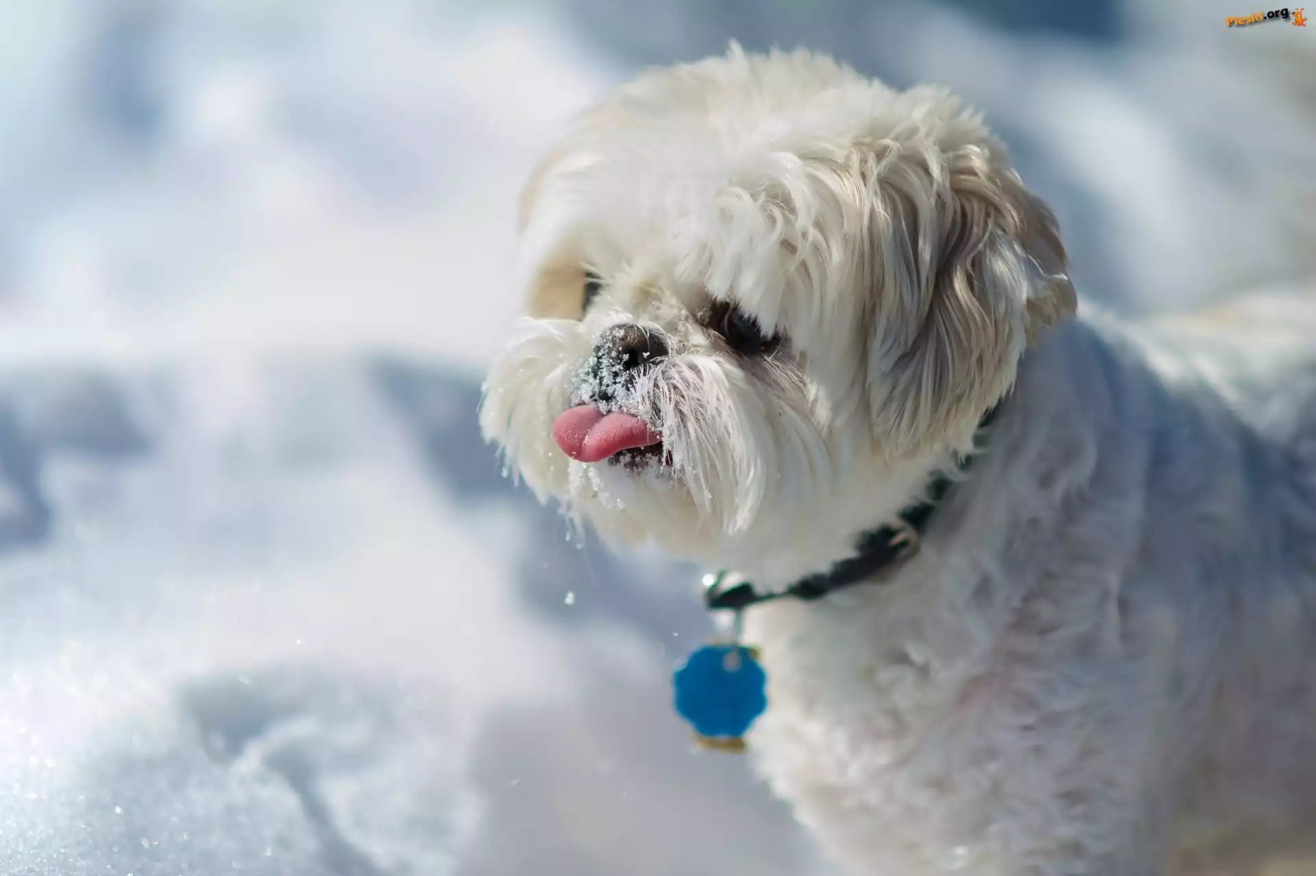 Język, Piesek, Słodki, Shih Tzu, Śnieg, Pieski