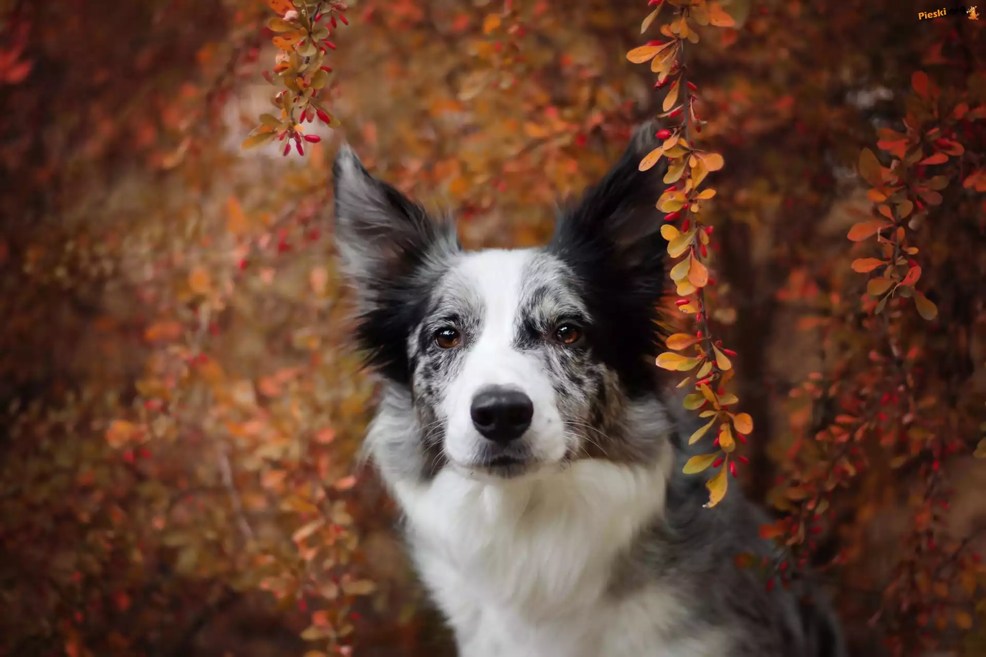 Krzew, Pies, Border collie, Gałązki, Pieski
