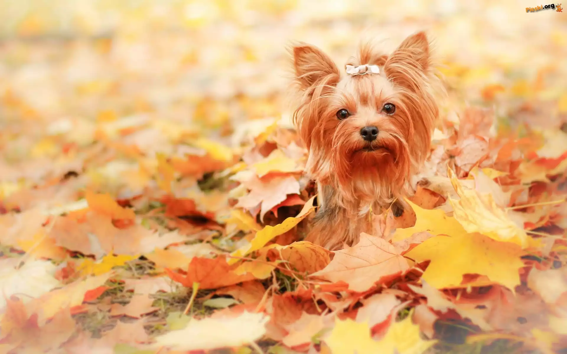 Pies, Jesień, Liście, Yorkshire Terrier, Pieski
