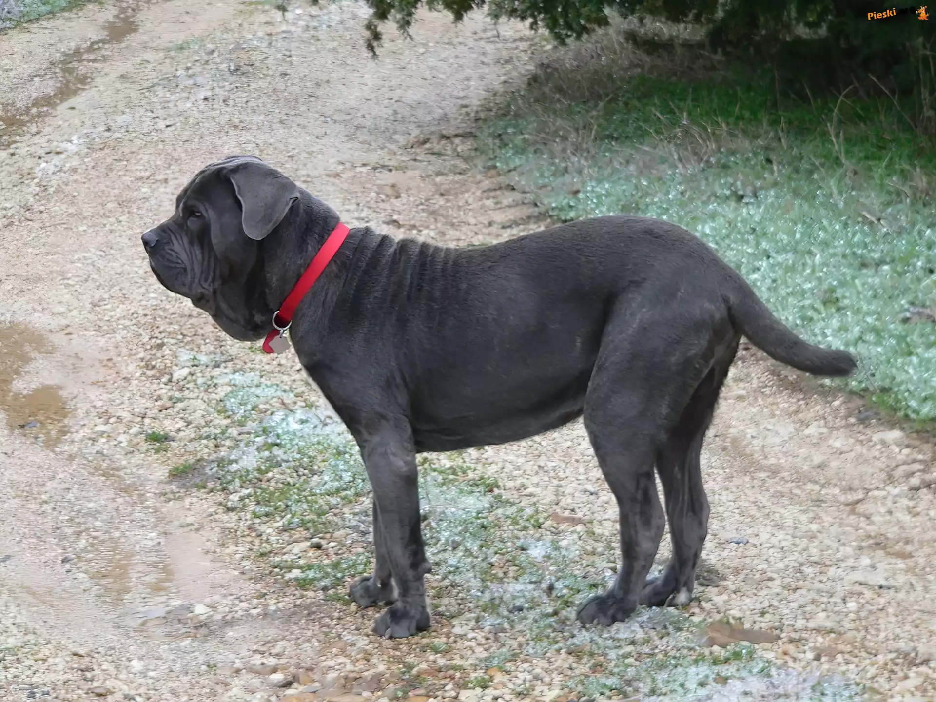 Mastif neapolitański, czerwona, obroża, Pieski