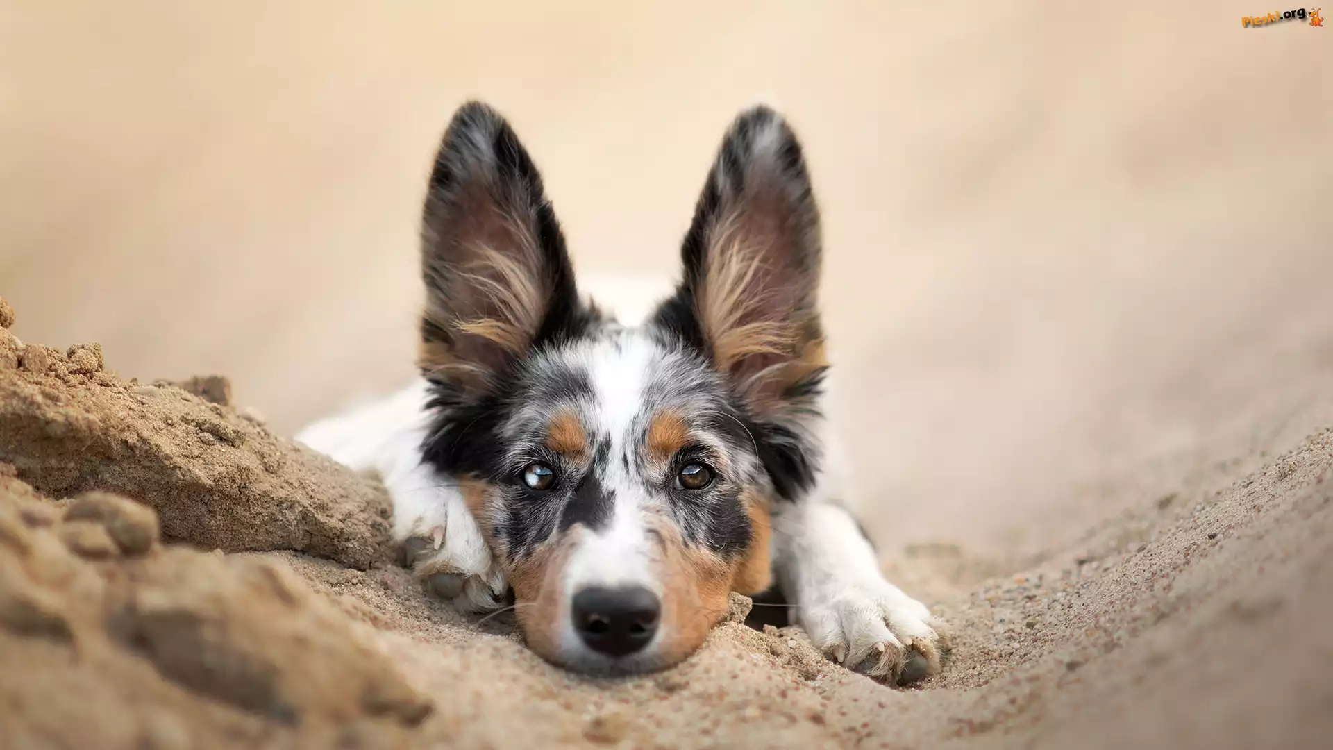 Mordka, Pies, Border collie, Piasek, Pieski