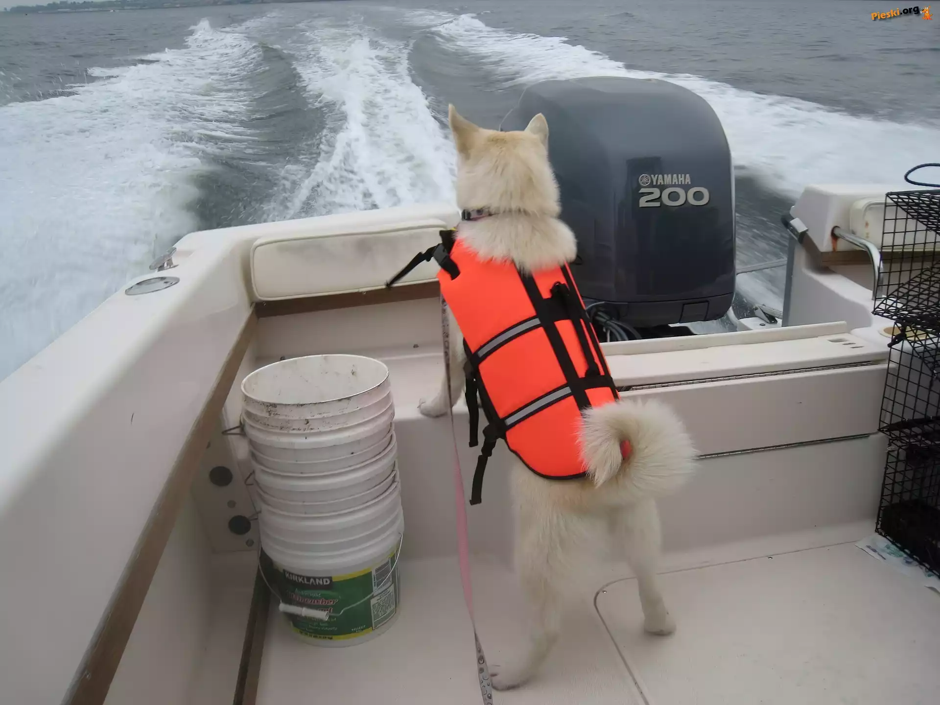 Norsk Buhund, fale, motorówka Norsk Buhund, pomarańczowy, kapok Norsk Buhund, kapok Norsk Buhund, zima Ziewający, Norsk Buhund Przyczajony, Norsk Buhund
