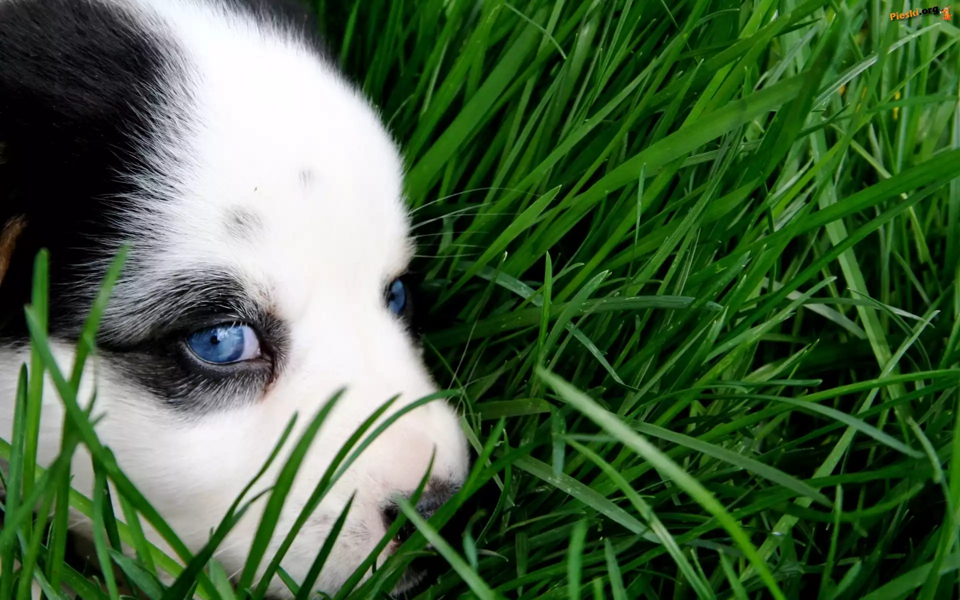 Oczy, Szczeniak, Niebieskie, Trawa, Pieski