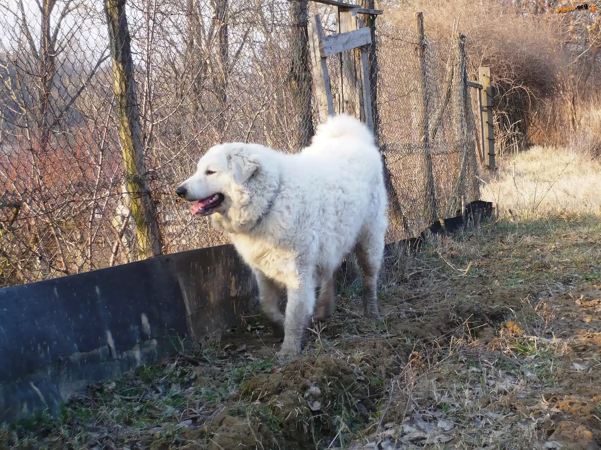 Trawa, Pies, Owczarek węgierski Kuvasz, Drzewa Owczarek węgierski Kuvasz Dorosły, Owczarek węgierski Kuvasz Owczarek węgierski Kuvasz, zielona, trawa Owczarek węgierski Kuvasz, płot Owczarek węgierski Kuvasz Język, oczy, nos Biały, Owczarek węgierski Kuvasz Szczeniaki, Owczarek węgierski Kuvasz Młody, Owczarek węgierski Kuvasz, owce nosek, Pysk, język, oczy