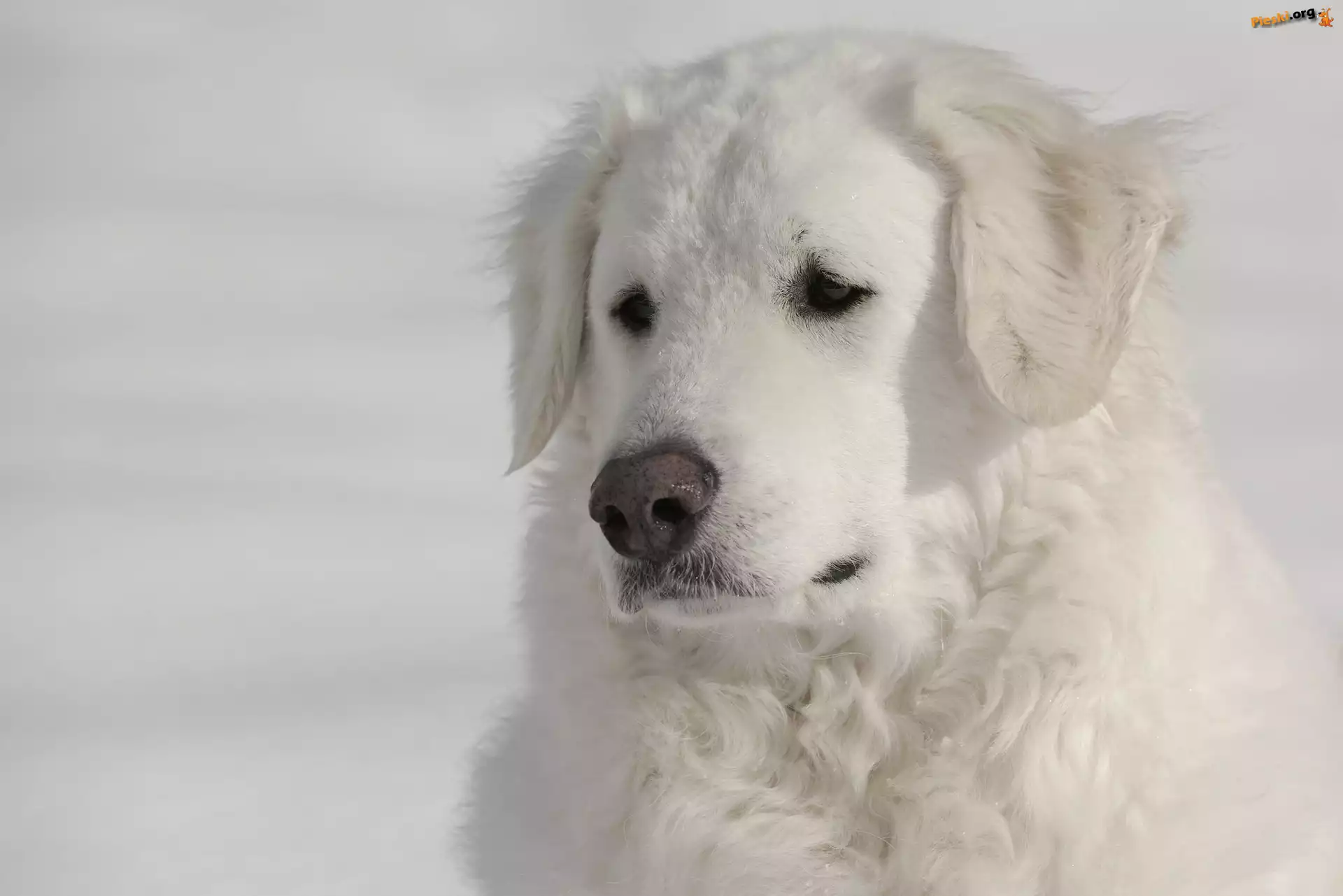 Owczarek podhalański, zielona, trawa Mordka, Polskiego owczarka podhalańskiego Trawa, Dwa, Pieski, Niebo Pies, Owczarek Podhalański Biały, mały, piesek czerwona, Owczarek podhalański, zęby, obroża Biały, Polski owczarek podhalański, język skórzana, Głowa, Owczarka podhalańskiego, obroża