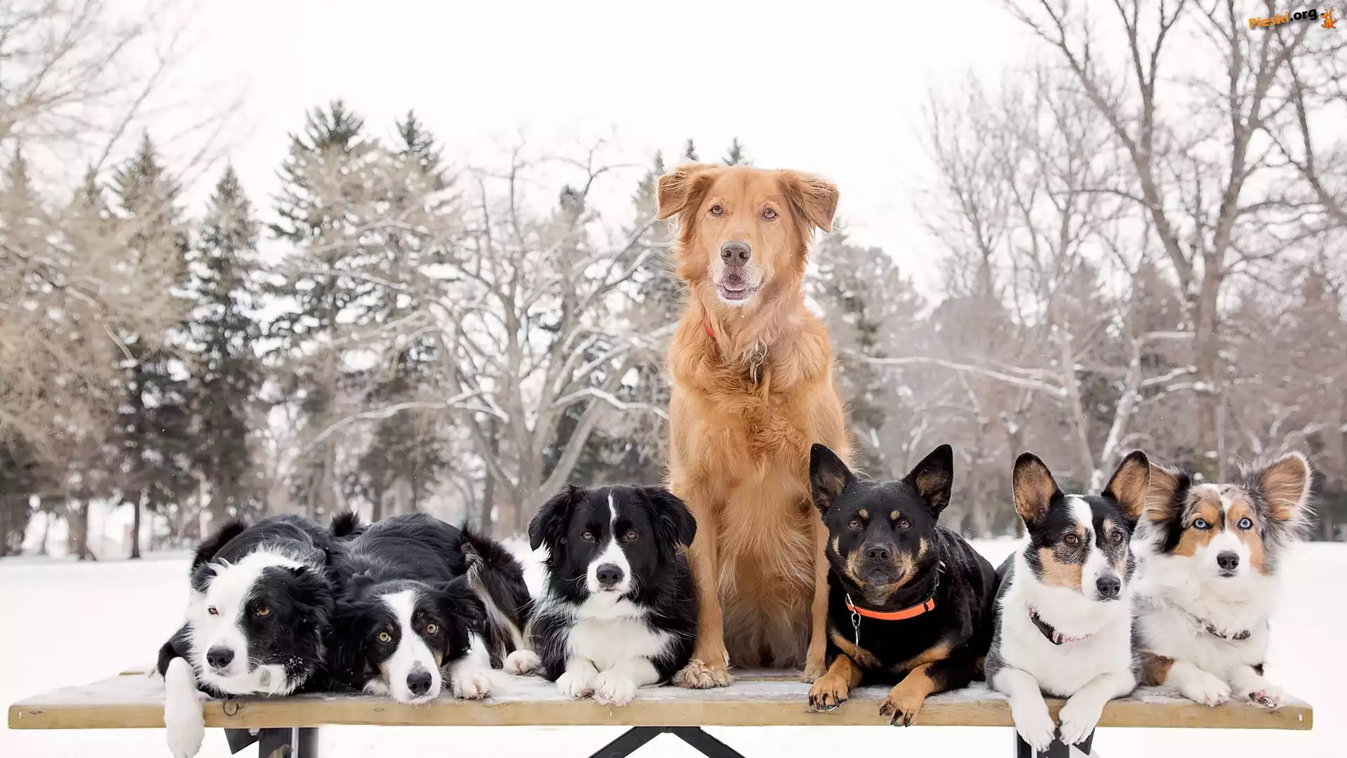 Park, Psy, Ławka, Zima, Pieski