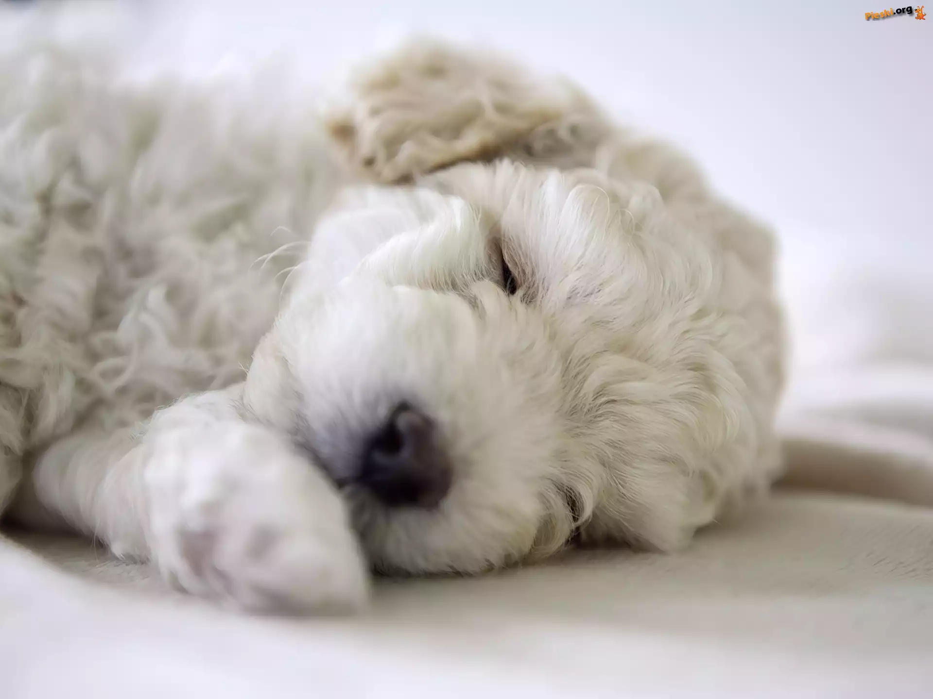 Szczeniak, Biały, Śpiący, Pudel, Pieski