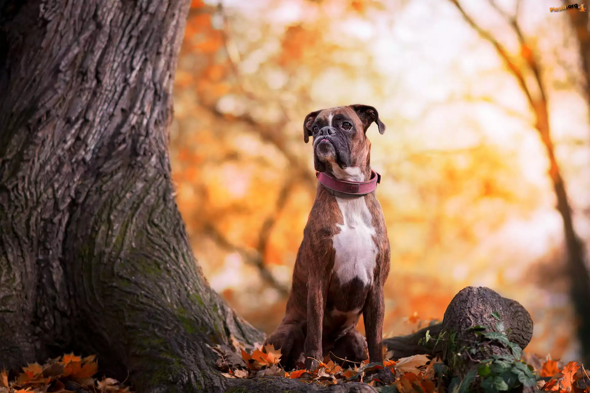 Pień, Pies, Bokser, Drzewo