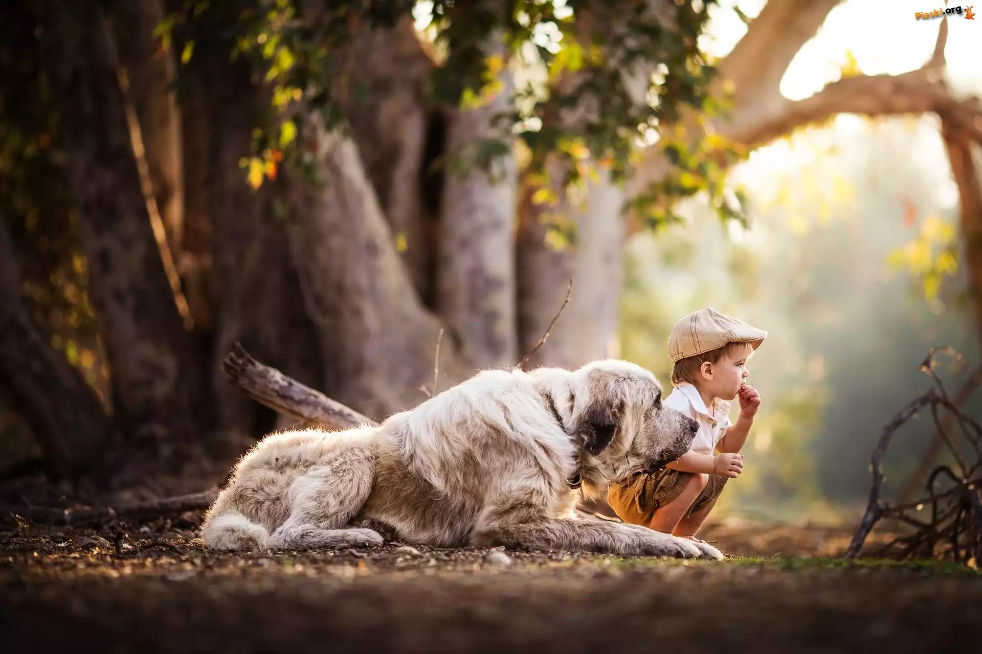 Pnie, Chłopiec, Pies, Owczarek środkowoazjatycki