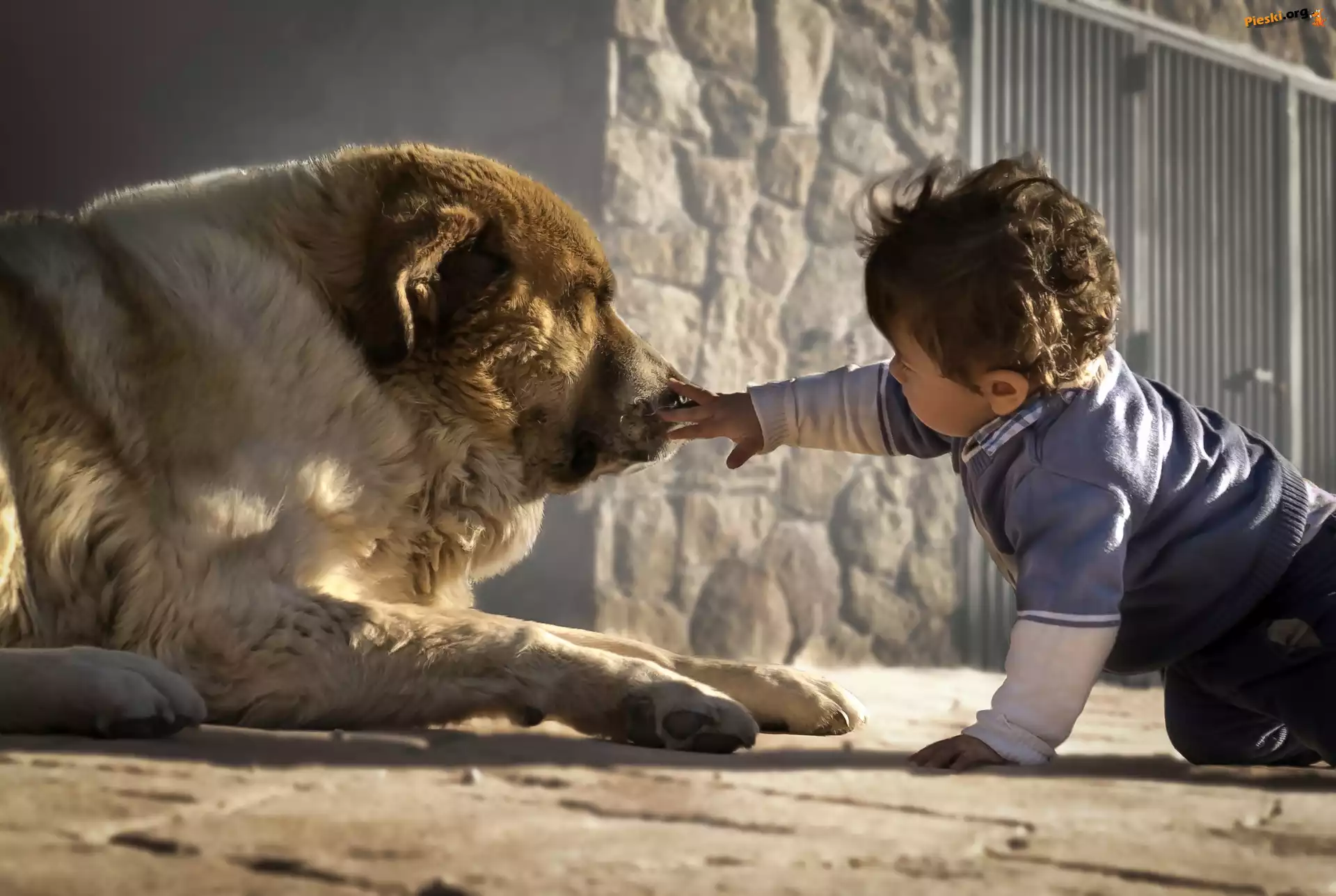 Szczeniak Chłopiec, Pies, Przyjaciel Śpiący, Piesek, Trawa Młody, Piesek, Owczarek środkowoazjatycki zielona, Mały, Owczarek środkowoazjatycki, trawa Pnie, Chłopiec, Pies, Owczarek środkowoazjatycki