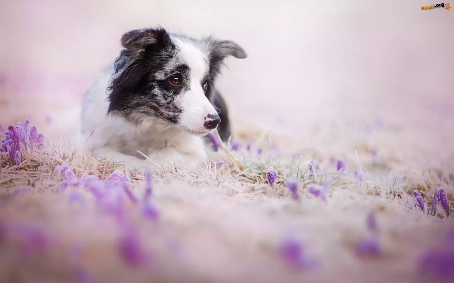 Pies, Border Collie, Kwiaty, Pieski
