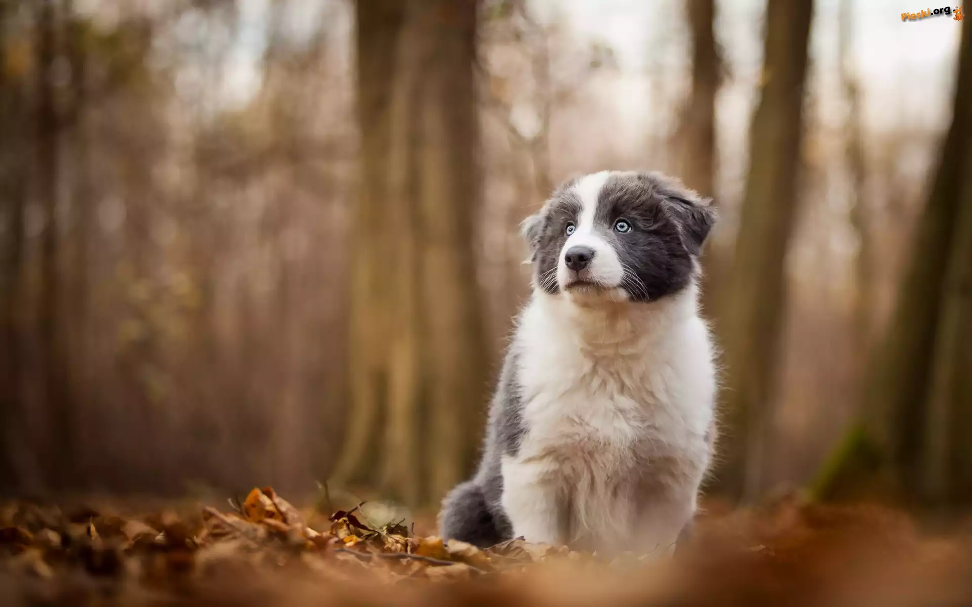 Las, Pies, Rozmyte, Border, Szczeniak, Collie, Tło, Pieski