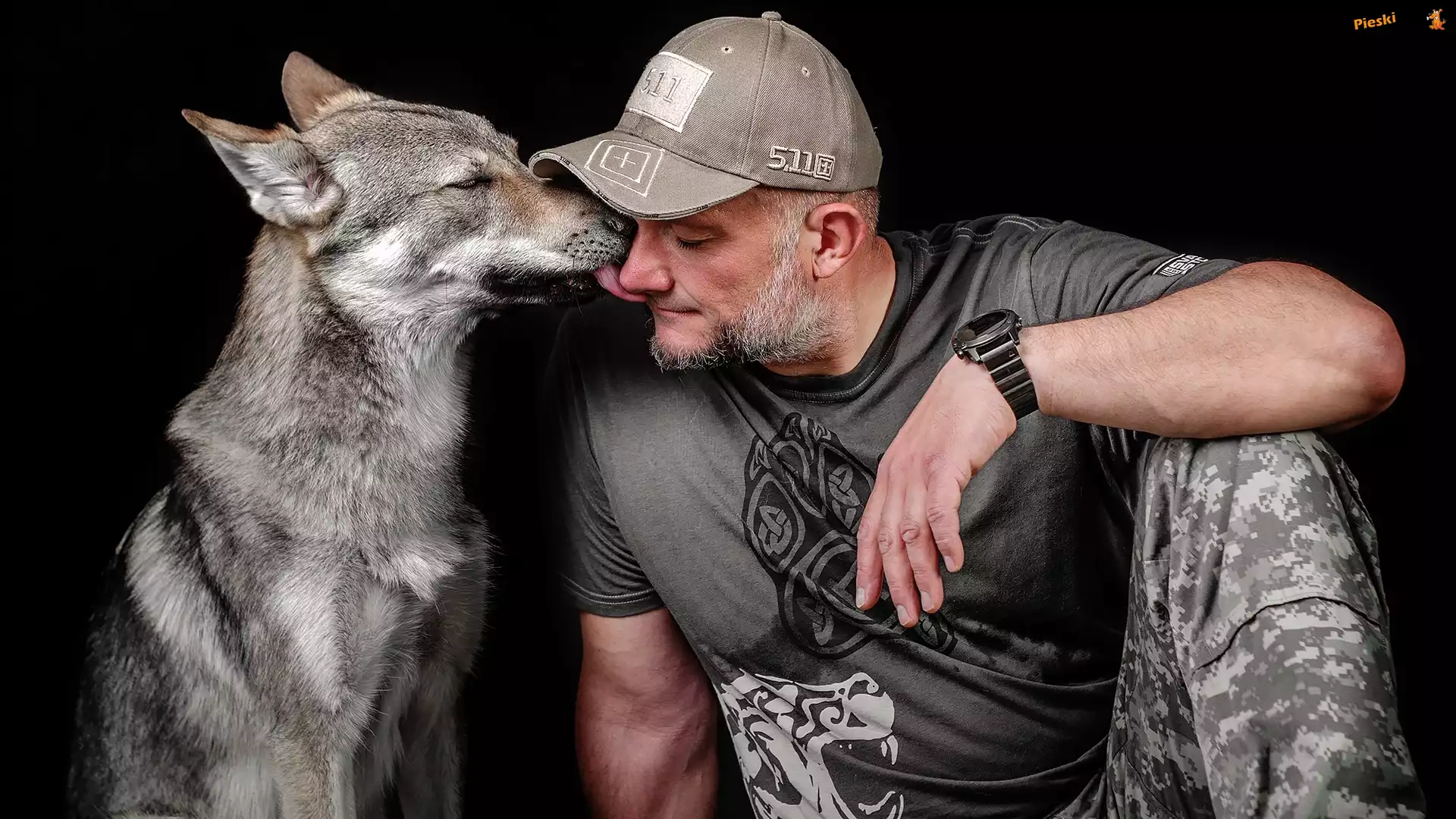 Mężczyzna, Pies, Zegarek, Czapka, Broda, Wilczak czechosłowacki, Pieski