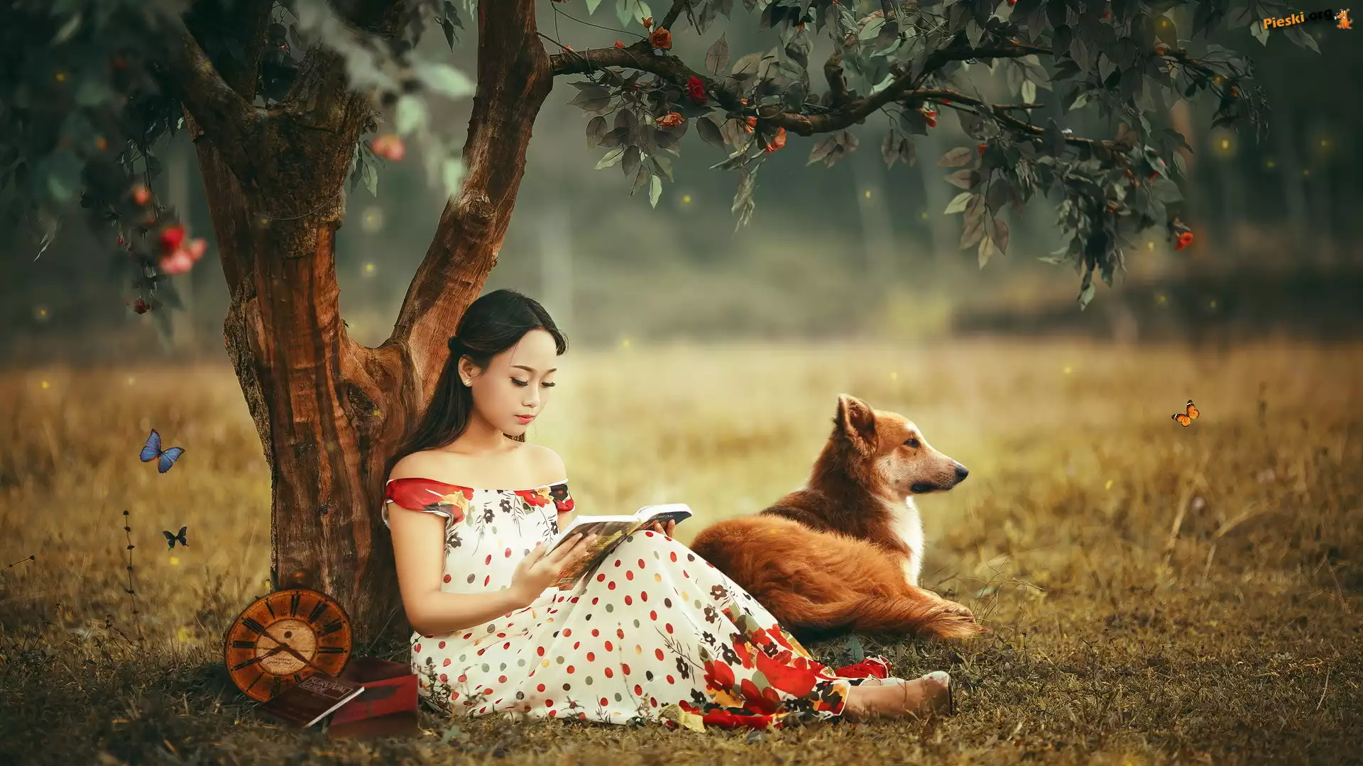 Motyle, Las, Dziewczyna, Pies, Pieski