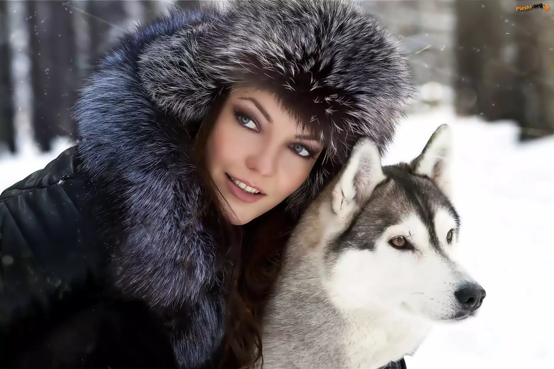 Pies, Kobieta, Czapka, Siberian Husky, Pieski
