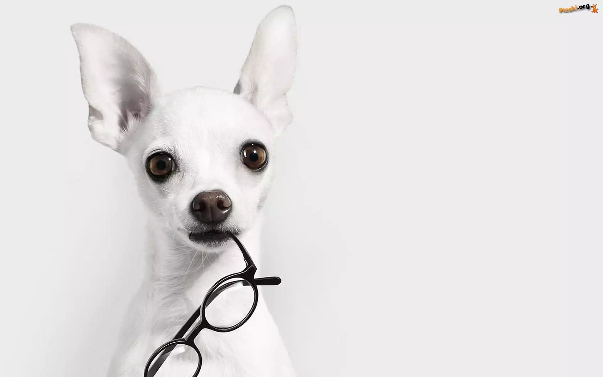 Biały, Piesek, Okulary