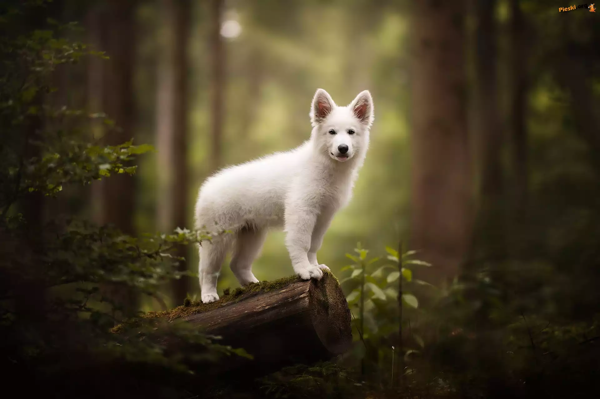 Biały, Pniak, Biały owczarek szwajcarski, Pies, Szczeniak, Las