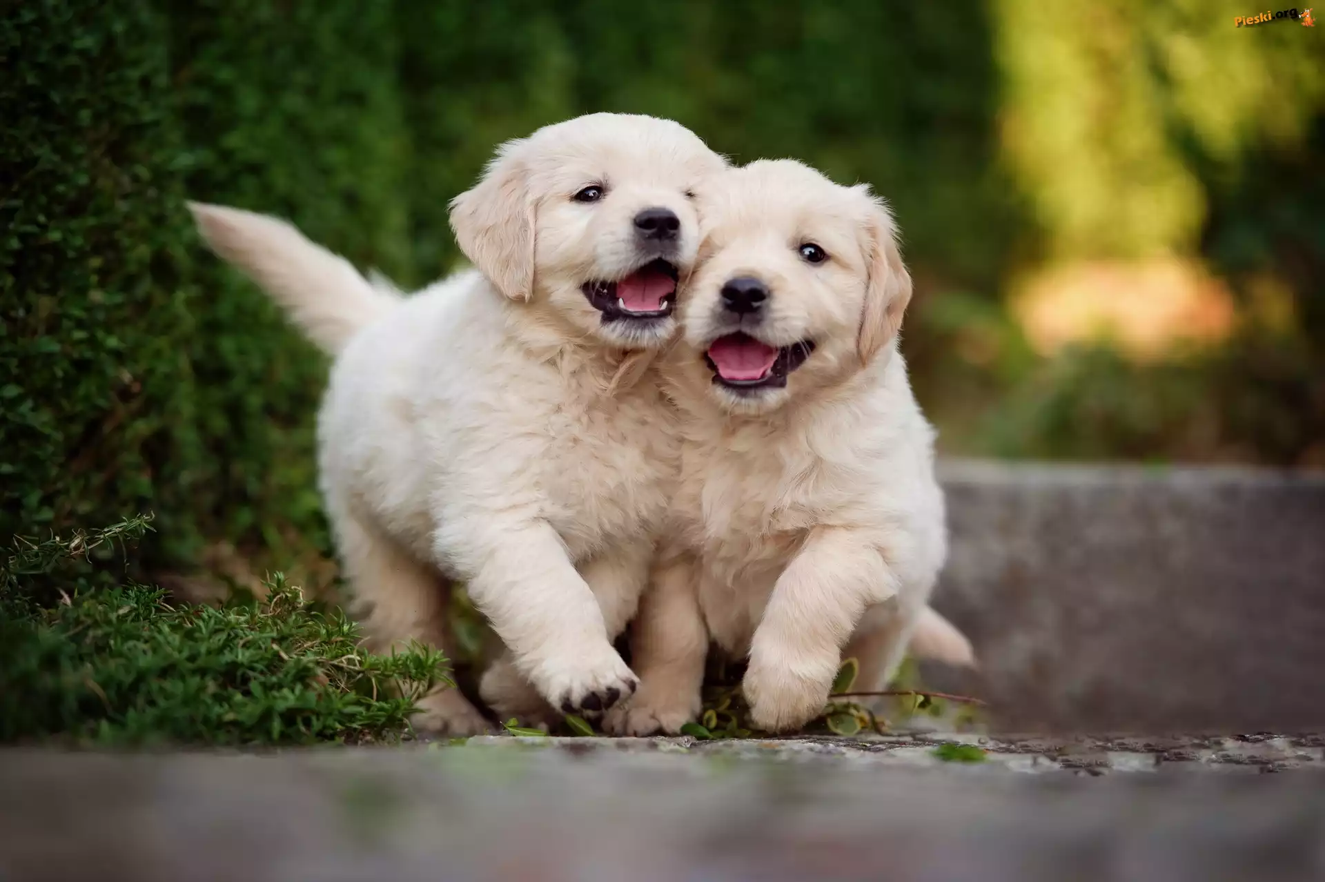 Psy, Szczeniaki, Dwa, Golden Retrievery