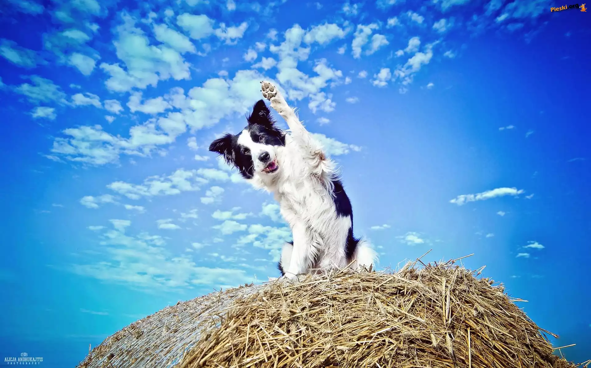 Pies, Siano, Niebo, Border Collie, Łapa, Bela, Pieski