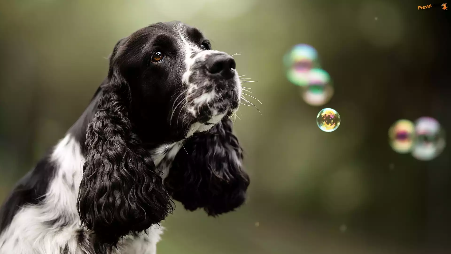 Cocker spaniel angielski, Czarno-biały, Pies, Bańki