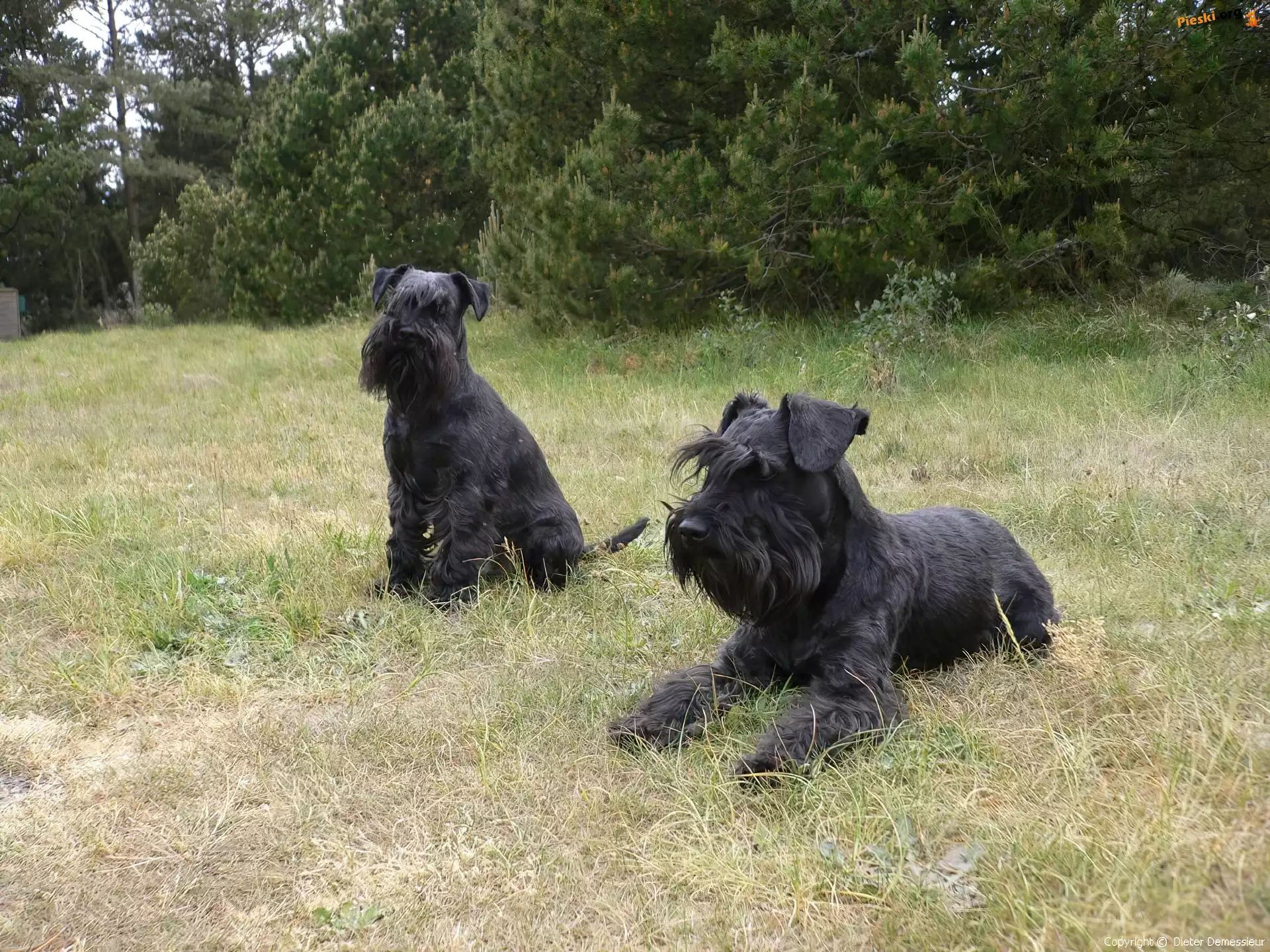 Biegnący, Sznaucer miniaturowy Sznaucer miniaturowy, Dwa, Psy, Sznaucer średni Sznaucer miniaturowy, czarno-srebrne, umaszczenie Dwa, Małe, Szczeniaki Pies, Sznaucer miniaturowy, Ubranko dwa, Sznaucery miniaturowe Pies, Sznaucer miniaturowy, Polanka Szczeniaczek, Mały, Piesek, Sznaucer miniaturowy postawione, uszy, Sznaucer miniaturowy