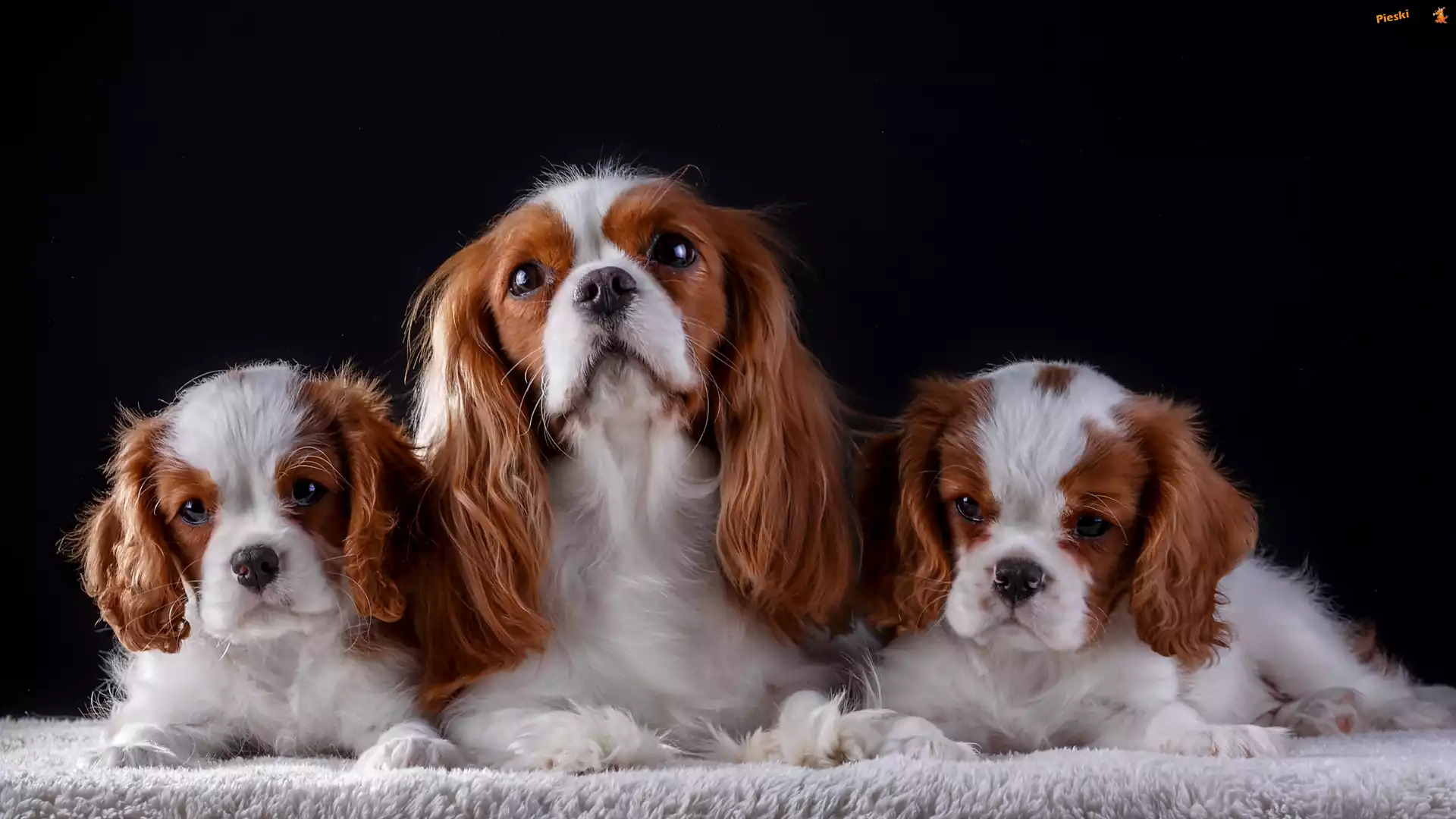 Koc, Szczenięta, Cavalier king charles spaniel, Suczka, Ciemne tło, Pieski