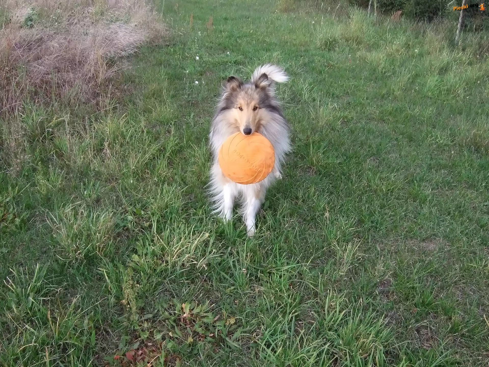 frizbee, trawa, Pies