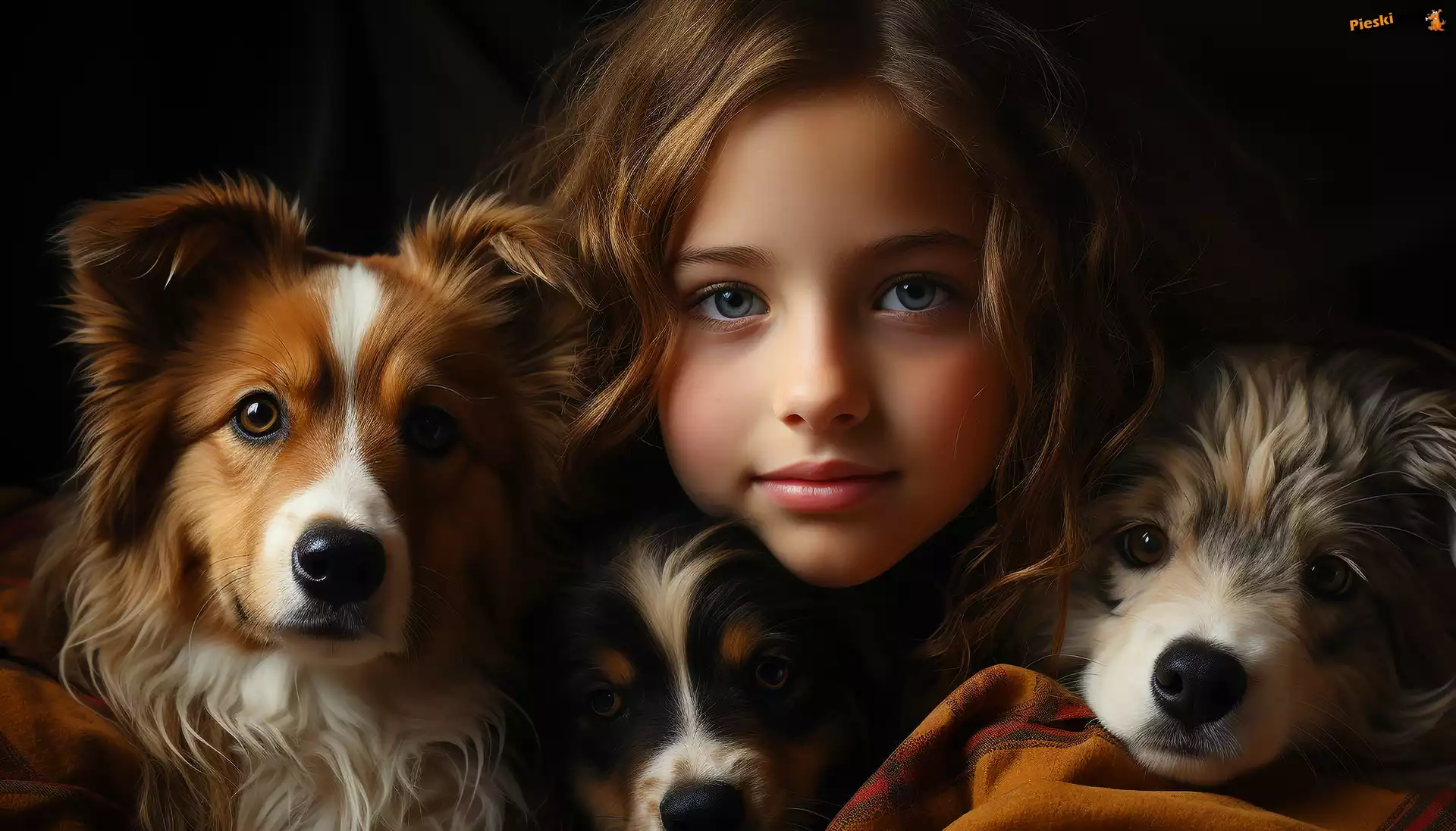 Zwierzeta, Psy, Dziewczynka, Trzy, Pieski