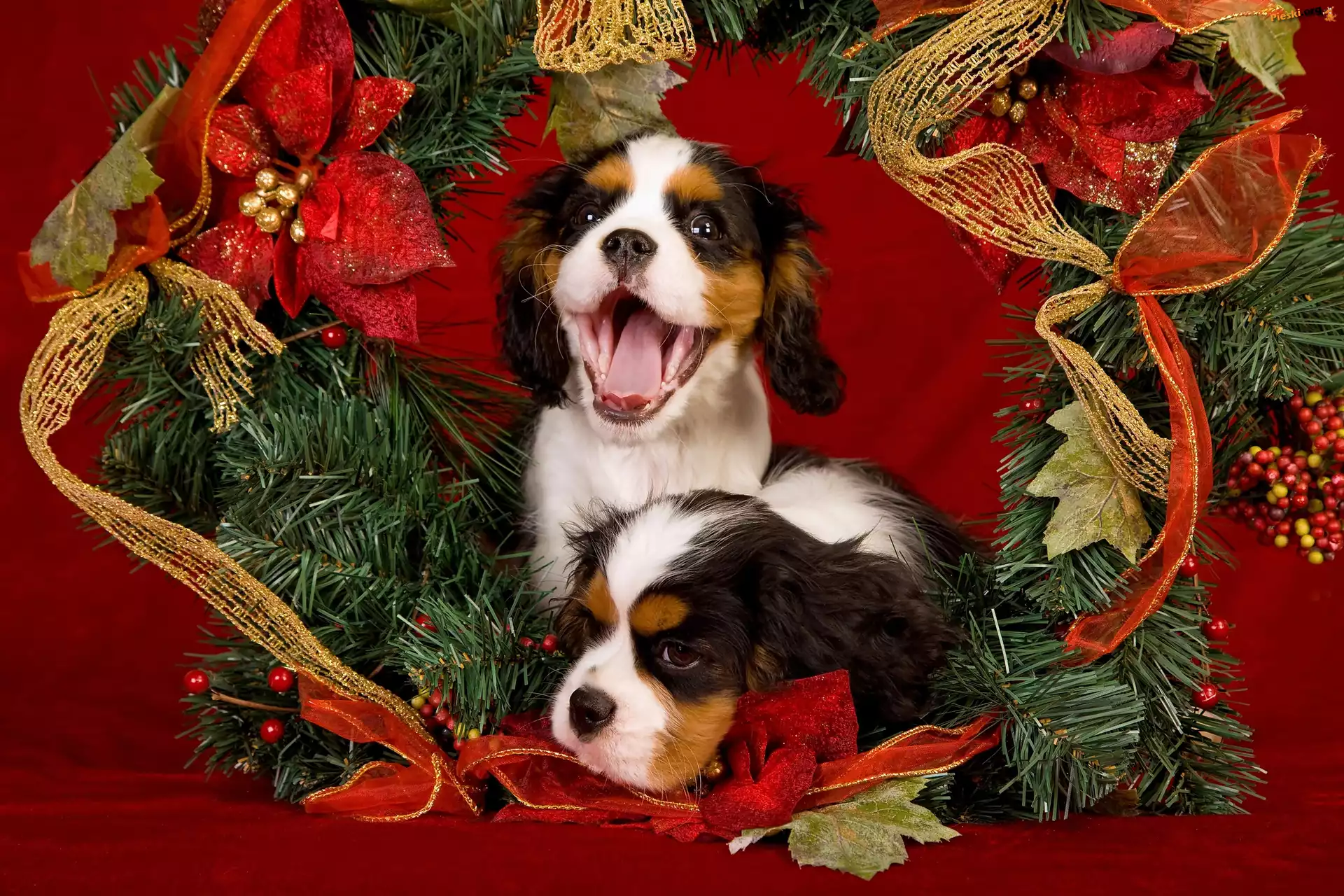 Wstążki, Dwa, Pieski, Gałązki, Pieski