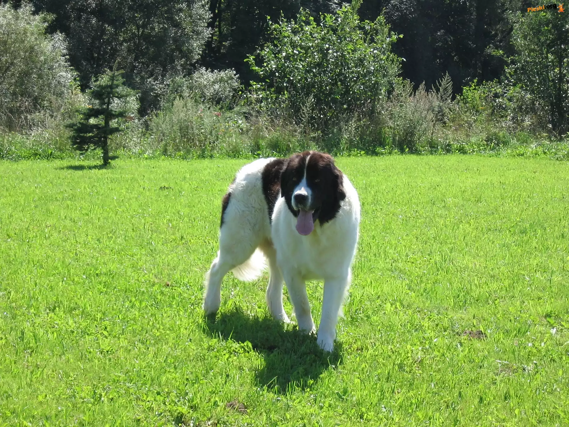 słodkie, szczeniaki, Landseery biegnący, Landseer kratka, chustki, Landseer trzy, Landseery Piesek, Łąka Kot, Pies, Słodkie Morda, Landseera trawa, zielona, Landseer biało-czarny, Landseer pysk, Landseera morda, Landseera mordka, Landseera