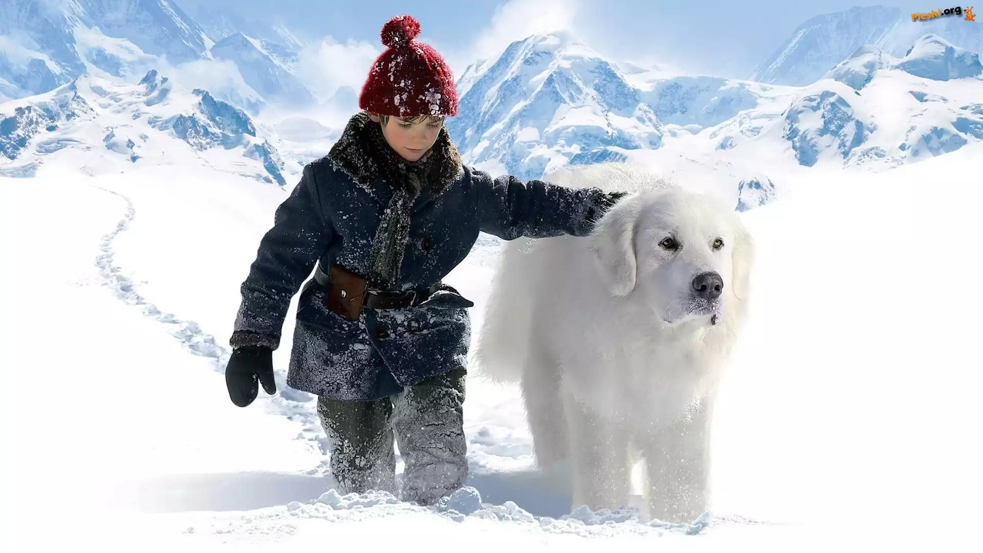 Dziecko, Alpy, Góry, Félix Bossuet, Pirenejski pies górski, Zima, Pieski